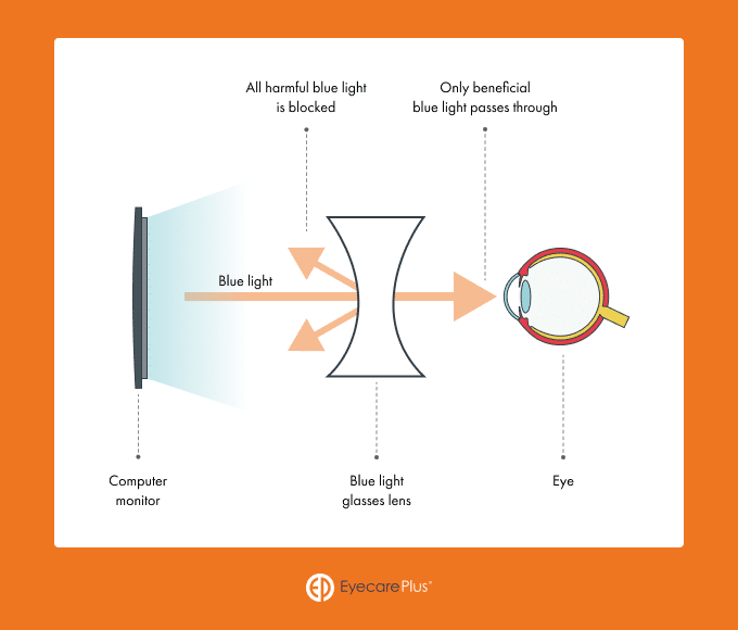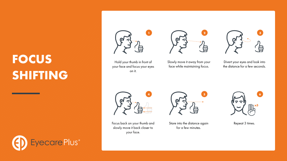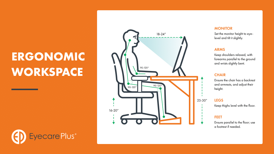 - Use blue-light filters: To avoid the strain from artificial blue light projected by screens, get a pair of blue-light lenses from Eyecare Plus.